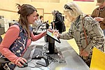 Poll worker Balie Strasburg assists Kathy Sellstrom as she checks in to vote for the spring election on Tuesday, April …
